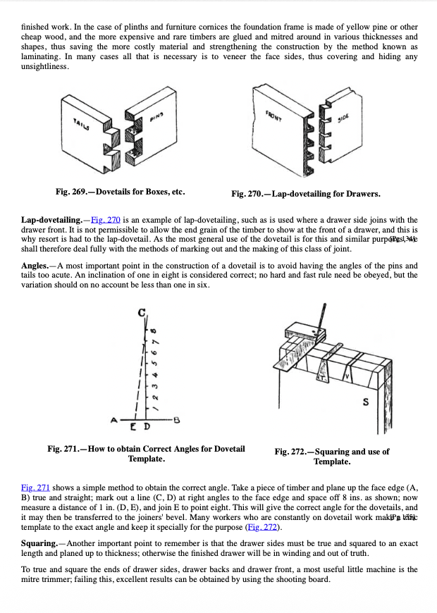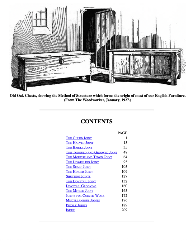 It is a practical woodworking manual written in the early 20th century. It was written for both beginners seeking foundational knowledge and experts looking for guidance on advanced techniques. It covers various types of wood joints, detailing the methods to create them effectively and their applications in woodworking projects.